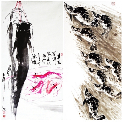 《莫忘当年瓜菜代 而今三餐有鱼虾》 国画