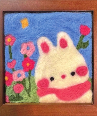 | 羊毛绘就的小兔子。 |