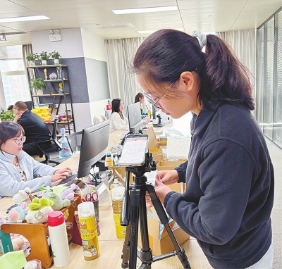 | 工作人员对着手机镜头逐一录制归还设备的开箱视频。 栾嘉雯 摄 |