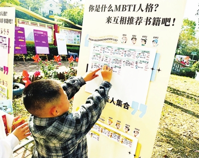 活动在独具韵味的毛笔书签签到中拉开帷幕。居民们手持集章券,穿梭于五大特色区域。共享阅读区内,琅琅诵读声、妙语连珠的留言、精美的书画展览,以及创新的MBTI书籍互推,让书香弥漫每个角落;图书漂流角以“睡饱觉的书”换“想冒险的书”的创意,促进了图书资源的社区循环。
