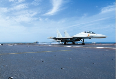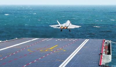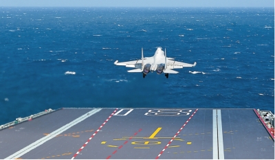 | 歼-15DT舰载机着舰。 |
