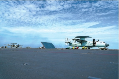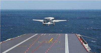 | 空警-600舰载固定翼预警机接续弹射起飞。 |