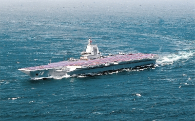 | 日前,海军福建舰开展入列后首次海上实兵训练。这是福建舰在航行。 |
