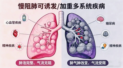 慢阻肺患者最怕“急性加重”——比如一次严重的感冒、肺炎,会让咳嗽、喘气突然变严重,甚至出现呼吸困难、昏迷,需要紧急住院治疗。数据显示,每次急性加重都会让肺功能进一步下降,还会增加死亡风险。
