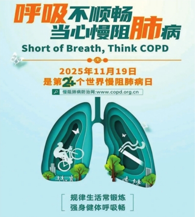 每年11月第三周的周三是“世界慢阻肺日”,2025年11月19日是第24个世界慢阻肺日。今年的主题是“呼吸不顺畅,当心慢阻肺。”该主题旨在提高公众对慢性阻塞性肺疾病的认知,强调早期诊断与肺功能检查的重要性。