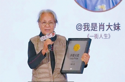 | “肖大妹”在领奖台上发表获奖感言。 |