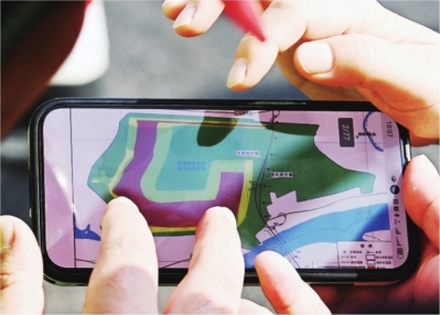 | 施工负责人展示他手机里存储的《涨渡湖湿地自然保护区环境影响评估报告》示意图,桥梁线路改动的痕迹清晰可见。 |