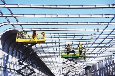 | 工人正在安装全封闭式声屏障。 |