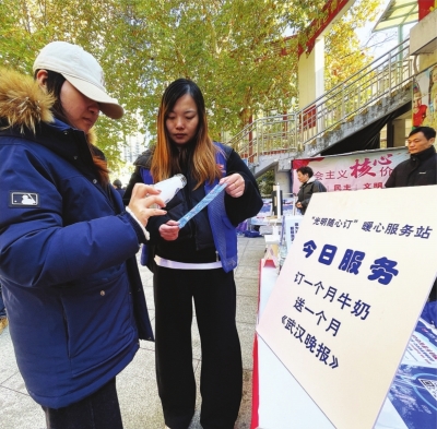武汉晚报的订报服务同样人气不减。工作人员热情介绍报纸内容和订阅福利,订全年《武汉晚报》还可获赠两张价值80元电影票,不少老读者当场续订,表示:“看报成了习惯,离不开。”