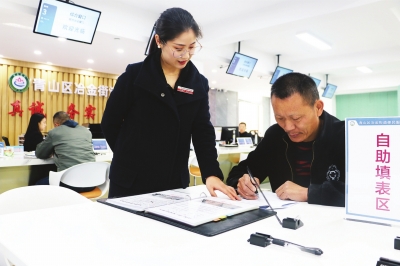 | 大厅工作人员指导居民填写表单。 通讯员供图 |