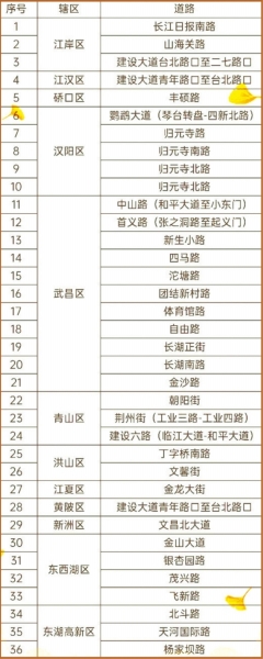 | 武汉部分银杏特色景观路。 制表:温舒莲 |