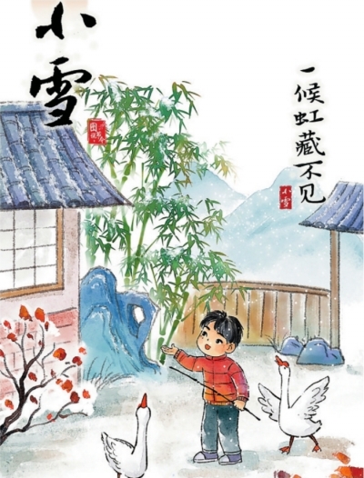 古籍《群芳谱》云:“小雪气寒而将雪矣,地寒未甚而雪未大也。”这意味着小雪节气寒意渐浓,雨水转雪,但此时雪量不大,因此称为小雪。