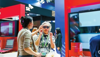 | 近日,参观者在国家会展中心试戴一款AI眼镜。 新华社发 |
