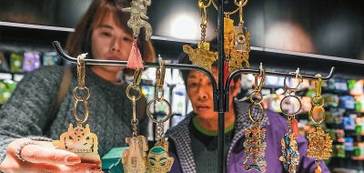 | 游客在四川省广汉市三星堆博物馆内的文创商店选购文创产品。 新华社发 |