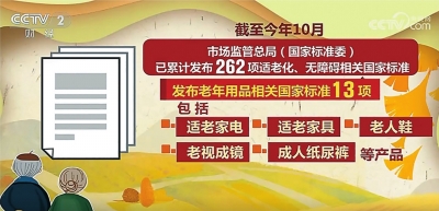 王玉环介绍,近年来,市场监管总局联合民政部等部门统筹协调适老化改造国家标准,重点加快适老化公共基础设施、适老家居环境设计、适老产品研发、解决老年人数字鸿沟等领域国家标准研制,适老产品和服务标准供给持续加大,如目前已累计发布262项与适老化、无障碍相关的国家标准,以及适老家电、适老家具、老人鞋、老视成镜、成人纸尿裤等老年用品国家标准。