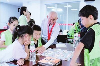 | 老党员传艺,棋乐伴童心。 |