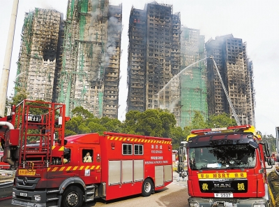 | 11月27日拍摄的香港新界大埔区宏福苑火灾救援现场。 新华社发 |