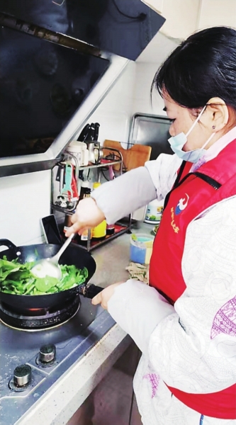 | 工作人员周玲上门为老人做饭。 记者史强 摄 |