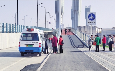 当天,这辆“迷你型”定制公交停靠在右岸大道开启桥站点,10名乘客依次下车,步行即可到达观光步道。