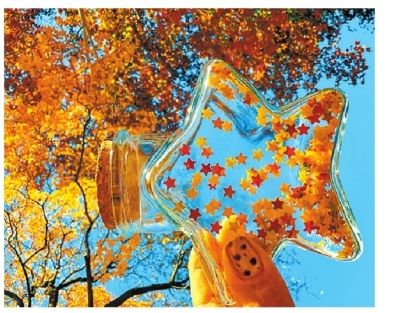 除了用银杏叶做服饰,陈女士特意带上装着水的瓶子和印花器去了日坛公园,将落叶变成了梦幻的许愿瓶。她用印花器在落叶上印出星星和心的形状,装进瓶子中摇晃,让里面的星星转起来,放在手机手电筒上时,瓶中秋色流转,光影迷人。“好有趣呀,果然有趣的人哪里都是风景。”“年轻人就是会玩。”这种低成本、高乐趣的创意让网友们纷纷留言想要去做一个。