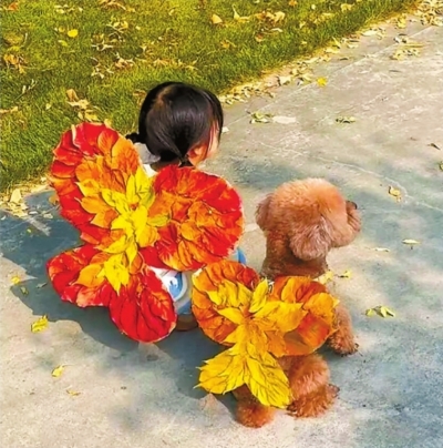 身披金灿灿的银杏叶斗篷,头戴一顶别致的“魔法帽”,小朋友莱宝在北京地坛公园满地金黄的落叶中一亮相,很快就成了全场焦点。往来游客纷纷驻足,举起手机、相机记录下这灵动的一幕。“好可爱,人气也超高。”“拍到啦,萌翻了。”社交媒体上,不少网友晒出了偶遇莱宝时拍下的各种角度的可爱照片。