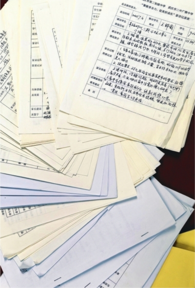 每次家访结束,带队老师都会填写一张记录表,上面记载着学生近期基本情况、家访交流事项和家长提出的诉求等内容。这些家访记录一直存放在学校政教处,各科老师会据此定期评估学生变化,制定有针对性的教育教学方案。