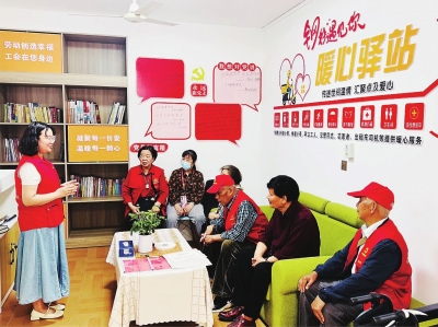 针对老旧社区老人、残疾人出行不便的问题,社区联合禾康智慧养老服务公司在驿站内设立志愿者服务点,每月5日开展便民理发日活动,社区志愿者冯师傅为高龄老人免费理发,解决老人的“头”等大事。居民赵建红发挥缝纫特长,不定期到驿站提供便民缝纫服务。驿站还成为居民纳凉取暖点,夏天送清凉、冬天送温暖,老人们在这里聊天、下棋,邻里温情满溢。居民于雪云高兴地说:“平时总是一个人在家,到驿站既能剪头发还能和大家聊聊天,社区真是给居民做了件大好事!”