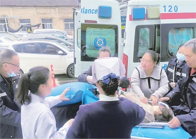 | 医护人员正将患者送上救护车。 通讯员供图 |
