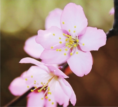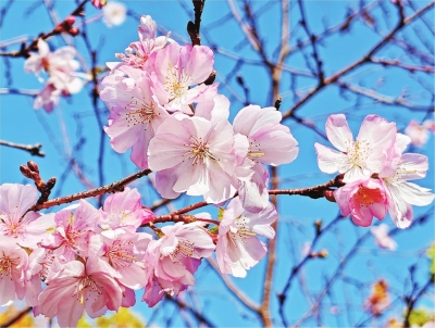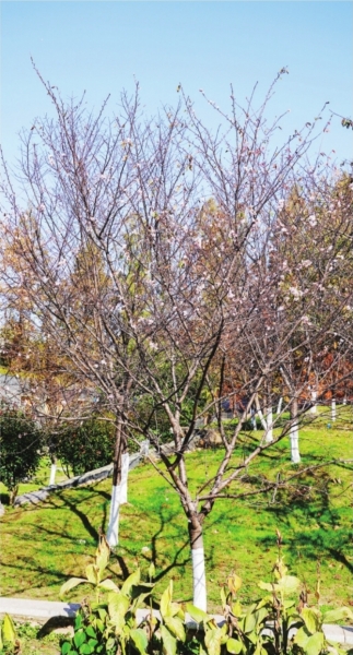 “这不是反季开花,而是应季开花。”市园林科学研究院樱花研究中心主任、高级工程师聂超仁介绍,这种樱花叫奖章樱,是该院国家樱花种质资源库收集的樱花品种之一。它们每年春秋两季开花,今年开花是11月初立冬之前,花期还可持续一周左右。