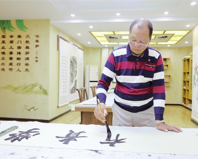 | 张宗保现场书写“学贵有恒”。 实习生杨澜 摄 |