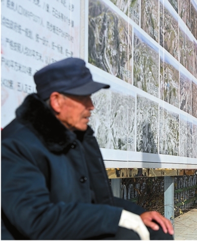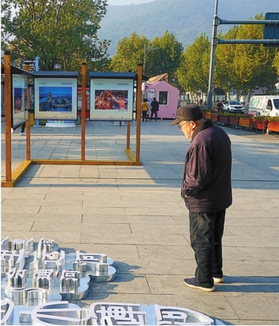 | 一位老人在摄影展现场驻足参观。 |