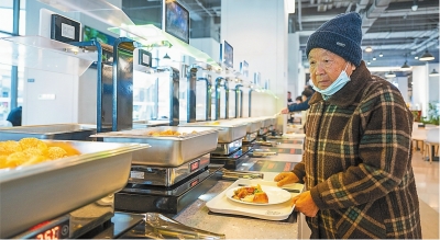 | 11月25日,一名老人在社区食堂内取餐。 新华社发 |