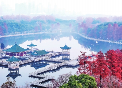 12月6日在武汉市东湖听涛景区拍摄的冬日景色(无人机照片)。