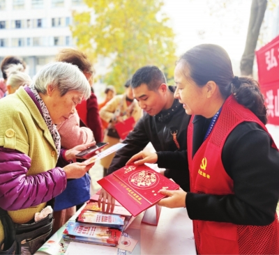 | 居民仔细阅读宣传折页。 |