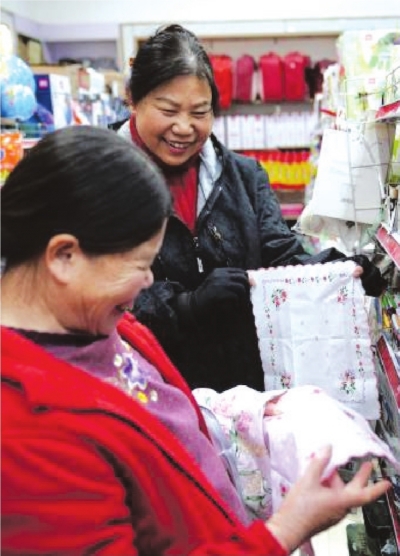 | 12月2日,长春百货商店营业员向顾客推荐手帕。 中新社发 |