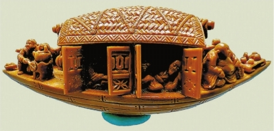 “从第一版《核舟记》改进到第五版,不仅仅是核雕技术的提升与变化,还有舟船上7个人物布局及细节的完善。”这件被业内誉为“当代核舟巅峰之作”的藏品,现估值已超百万元,目前收藏于法国卢浮宫内,也奠定了高华林在中原核雕的领军地位。