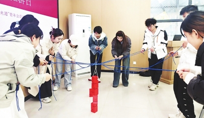 | 青年职工合力“建塔”。 |