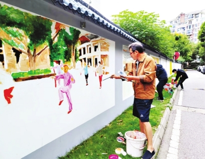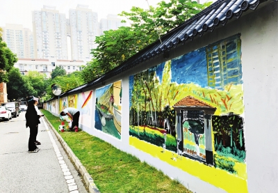 二是群力共建聚合力。施工阶段,社区组建两支队伍:由物业和有装修经验的居民组成的“墙体改造队”,负责修复裂缝、粉刷墙面、铺设盖瓦;由辖区幼儿园美术老师、书画爱好者、设计专业大学生及本地艺术家易小阳老师领衔的“创意绘画队”,依据五大主题分工创作。原本斑驳冷硬的墙体,逐渐被色彩、故事与情感填满,成为一道流动的社区风景线。