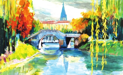 | 《园博园风景》 水粉写生 作者:刘新明(69岁) 江岸区后湖街道美庐社区 |