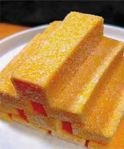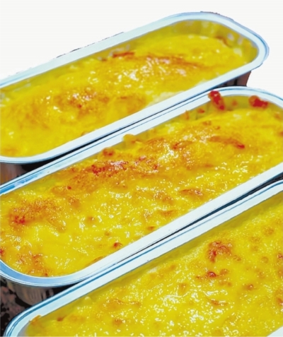 随着烤箱“叮”的一声响,赵逸凡取出烤碗,金黄色的表面拉着长长的丝,十分诱人。“很多人都认为红薯趁热吃最好,其实凉的红薯也别有一番风味。”赵逸凡店里还有一款红薯慕斯,将蒸熟的红薯搅碎成泥,加入淀粉和吉利丁片、白糖、牛奶等,打成糊糊,冷藏三个小时,便又是一道美味。