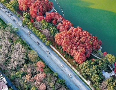 12月14日拍摄的湖北省武汉市南湖大道(无人机照片)。