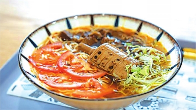“90后”游客王女士拿着手机,对着刚上桌的编钟卤蛋牛肉面拍照。琥珀色的浓汤里,位居“C位”的编钟卤蛋吸引眼球,其复刻出曾侯乙编钟轮廓,弧度圆润规整,纹路清晰可辨。