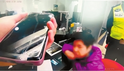 | 办案人员在银行劝阻老人转账。 |
