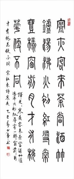| 《寒夜》 释文:寒夜客来茶当酒,竹炉汤沸火初红。 寻常一样窗前月,才有梅花便不同。 作者:余少华(73岁) 蔡甸区老年大学 |
