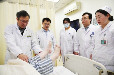 | 周迎春教授团队查看患者恢复情况。 通讯员陈有为 摄 |