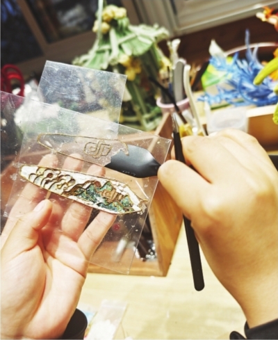 “我想将非遗与现代无人机展示结合起来。”一周前,肖圆圆带着破损的无人机桨叶来找老师,希望用掐丝珐琅工艺复刻桨叶。“珐琅需要烧制较复杂,我就先从掐丝教起,再让她用螺钿技艺进行填充。”闫佳回忆,肖圆圆为了掐出流畅的线条,曾和老师们一起熬通宵,反复调整3遍才满意。