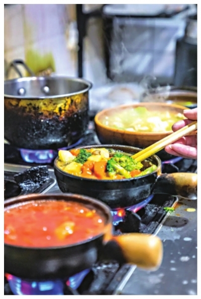没有预制,砂锅用新鲜菜现煮,不做外卖,端上桌还咕嘟咕嘟冒着热气。