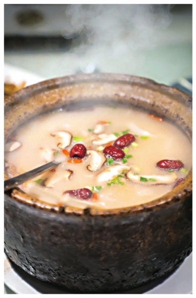 | 鸭子煨得骨肉分离,香菇、红枣点缀。 |