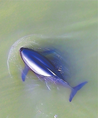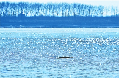 | 2023年12月24日,一头长江江豚在双柳长江大桥附近江面游弋。 |