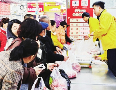 12月21日,正值冬至,不少市民来到汉口集贤路上的香肠灌制点灌香肠,人们有序排队显得格外热闹。